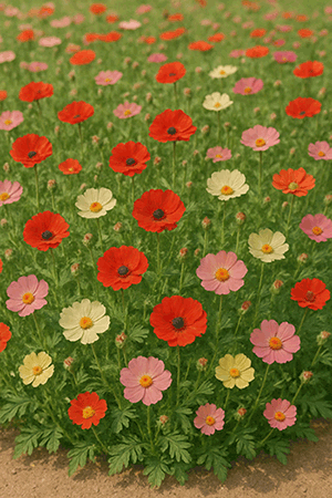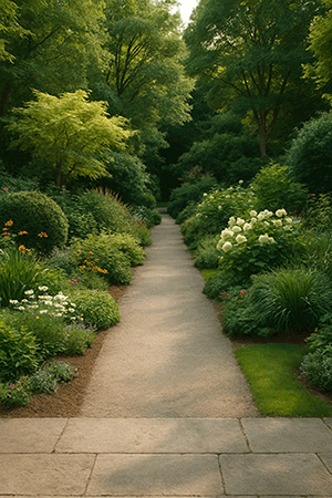 - ▪ 전치사 구조로 배경을 설명하면 장면의 위치와 구성이 더 풍부해짐 -> [꽃밭, 둘러싸인, 흩날리는]