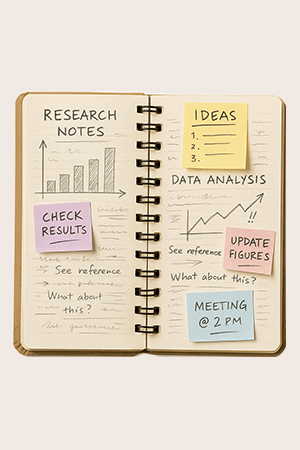 - ▪ 사물은 세부 요소(형태, 상태, 기능/용도, 장식, 사용흔적)를 함께 사용하면 이야기성이 잘 표현됨 -> [공책, 낡은, 펼쳐진]